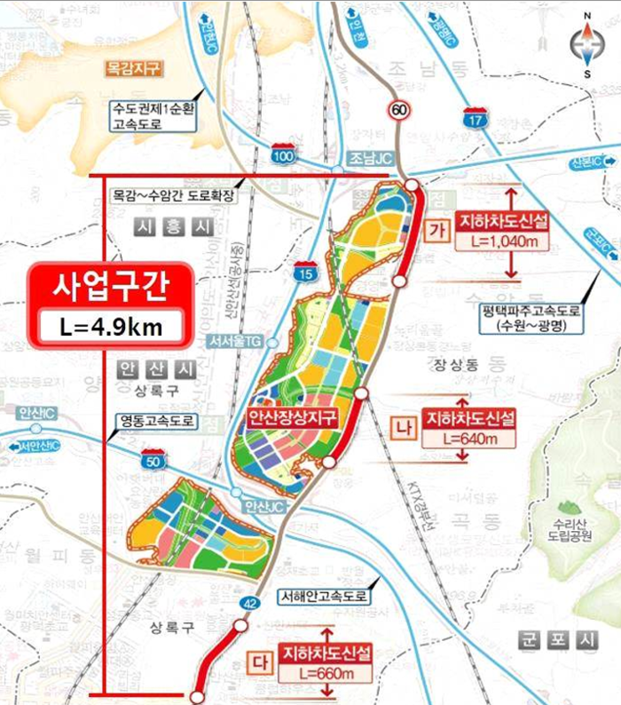 | 안산장상 국도42호선 자하차도 건설공사 위치도. /사진= LH |